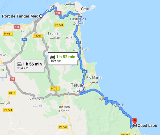 Encuentra en Transfers Maroc el mejor precio para el traslado Puerto Tánger Med a Oued Laou.